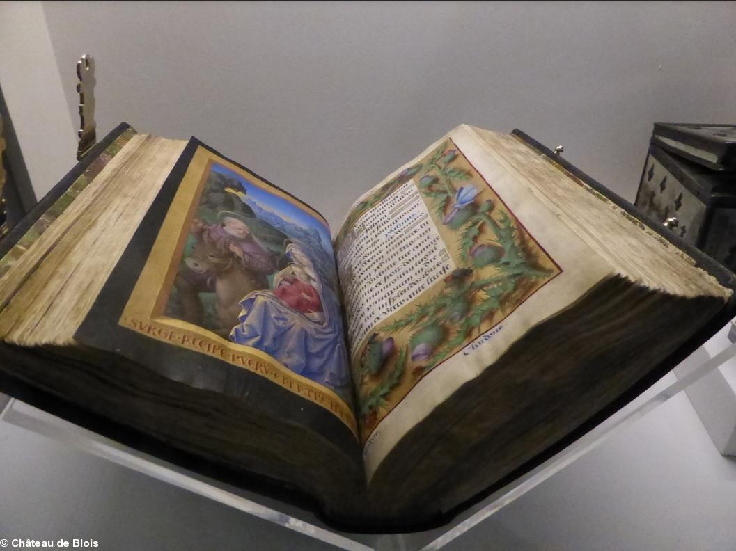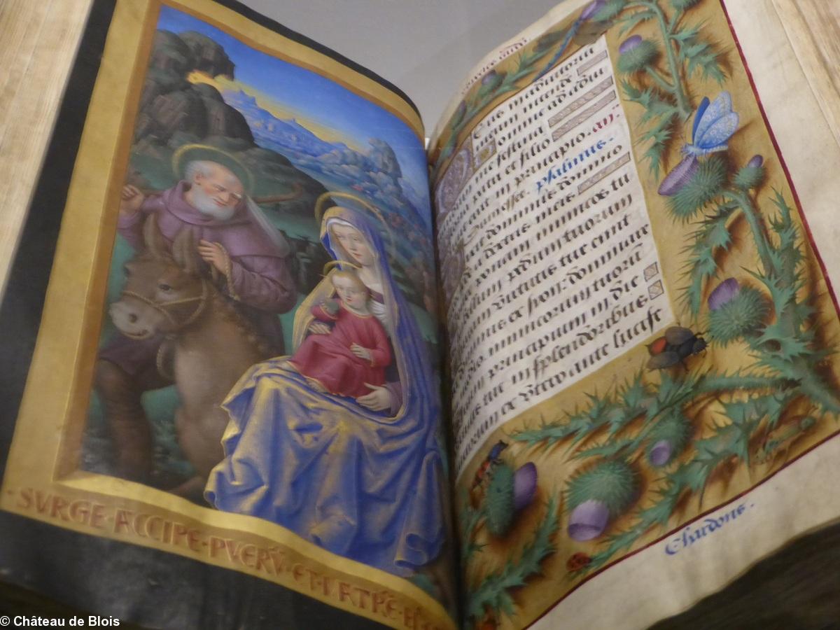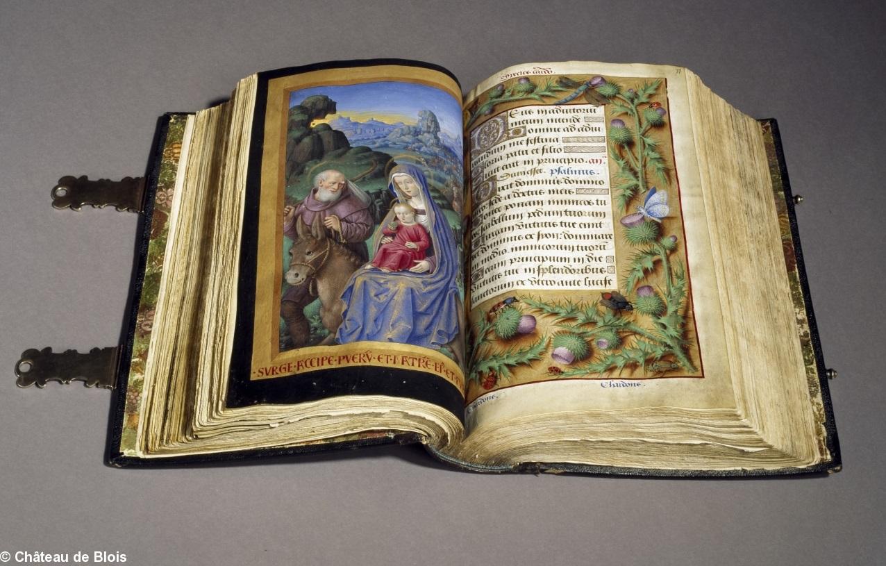 Dans le cadre d'une exposition sur les livres de la bibliothèque du roi François Ier, le château royal de Blois expose, dans l'aile Gaston d'Orléans, depuis le 4 juillet, le manuscrit latin 9474 de la Bibliothèque nationale de France (BnF) des Grandes Heures d'Anne de Bretagne. Outre la présentation de l'oeuvre elle-même, toute “en ors et en pigments”, ses 337 enluminures, dues au peintre tourangeau Jean Bourdichon, numérisées, pourront être “feuilletées” sur une borne numérique comme d'autres oeuvres. C'est dans le n° 73 de Chroniques de la BnF (avr.-juin 2015, p. 14), que Maxence Hermant (1) annonce l'exposition François Ier au château de Blois, avec Des pièces exceptionnelles, dont en haut de la colonne 2 Les Grandes Heures d'Anne de Bretagne : http://multimedia.bnf.fr/chroniques/chroniques_73/ à feuilleter en ligne.