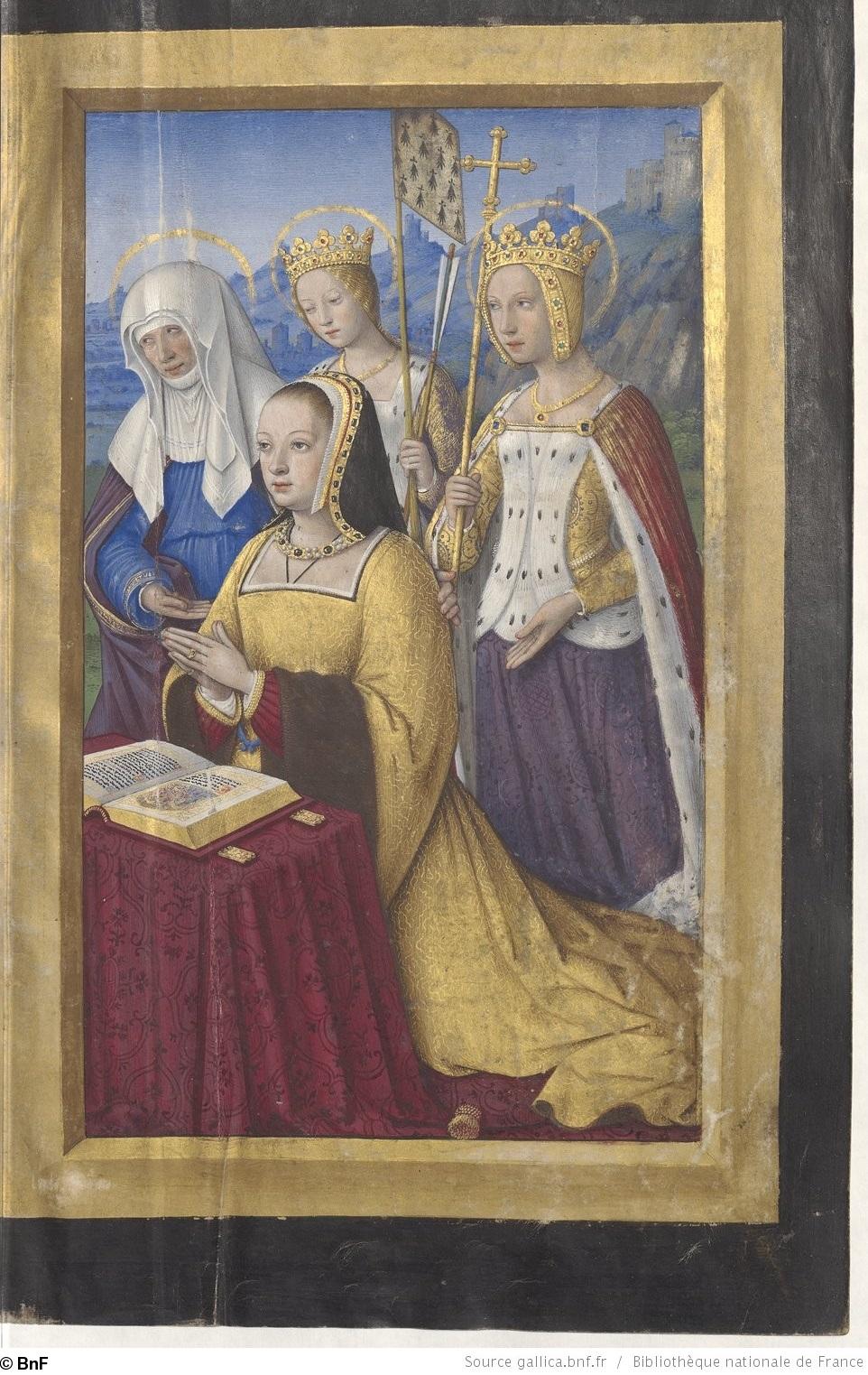 - Le Grand livre d'Heures d'Anne de Bretagne f° 3r très connu : Anne en prière devant Sainte Anne, Sainte Hélène et Sainte Ursule.