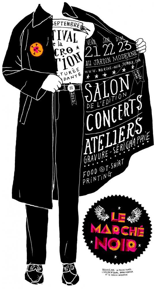 Pendant trois jours, chacun pourra s'initier à la sérigraphie ou à la gravure, participer à des ateliers ou rencontrer les acteurs de la micro-édition indépendante de Rennes et de Bretagne. Le festival commencera le vendredi soir par des concerts gratuits. http://marche-noir.tumblr.com