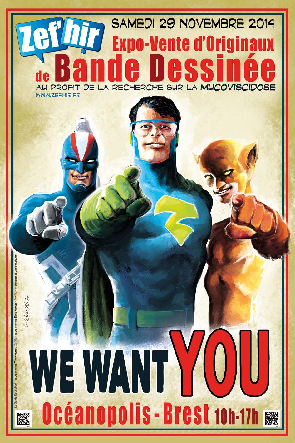 Porté par l'association Gaétan Saleün, le projet ZEF'HIR a un double objectif : collecter des fonds pour aider la recherche sur la mucoviscidose et rassembler un large public en sensibilisant chacun aux urgences de la recherche sur cette maladie génétique tout en faisant découvrir le monde de la BD et de l'illustration au plus vaste public. La première édition a rassemblé 182 dessinateurs, 37 illustrateurs et 18 scénaristes qui ont fait don de plus de 400 ½uvres et objets mis en vente qui ont rapporté plus de 33 000 euros, soit le salaire d'un ingénieur de recherche qui pourra travailler pendant un an sur un projet de recherche lié à la lutte contre la mucoviscidose. Pour cette deuxième édition, place aux super-héros car les malades, le personnel soignant, les familles sont des super-héros du quotidien et chacun peut en devenir un en participant à Zef'hir. Les 70 bénévoles seront entourés de Patrice Pellerin et Serge Fino, parrains de c½ur et d'André Juillard, Patrick Prugne et Pascal Moguérou, parrains de cette seconde édition. Juillard, Achde, Lepage, Pellerin, Chabouté, Hardy, Schuitten, ZEP, Neel, Rabaté, Kraen, Aouamri, Riff's Reb... au total plus de 230 auteurs, dessinateurs, illustrateurs et scénaristes, participeront à l'événement. Lors de la vente aux enchères ou à prix fixe des planches et illustrations, seront proposés plus de 400 objets avec une possibilité d'achat sur place ou à distance par internet et téléphone. Un comics dont le super-héros ZEFMAN, entouré du Garde et de Fox Boy, est créé à cette occasion par des auteurs présents le jour de la vente.