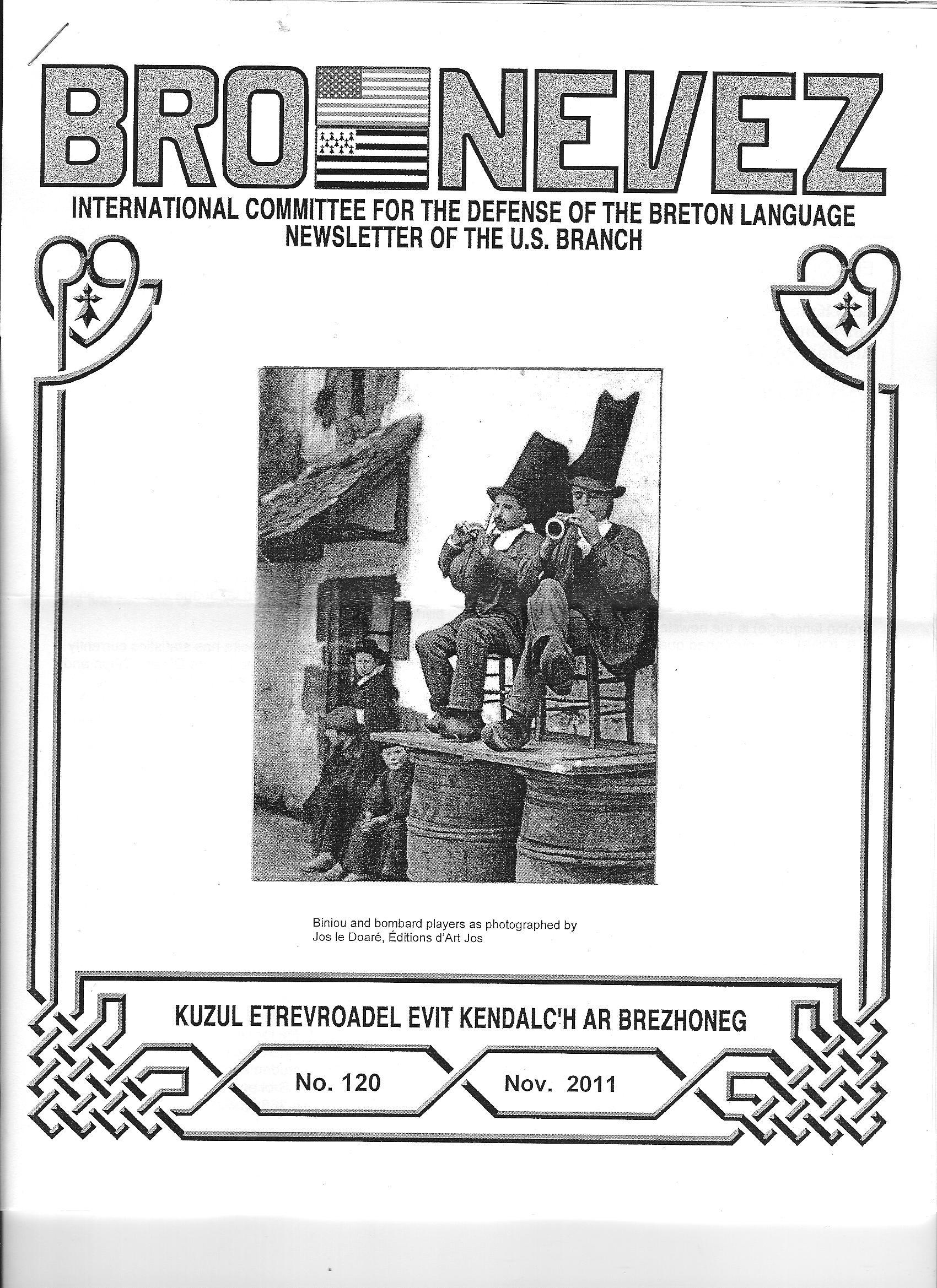le N°120 de Bro Nevez, la lettre de la branche américaine du Comité International pour la défense de la Langue bretonne, vient de paraître sous la direction infatigable de Lois Kuter.