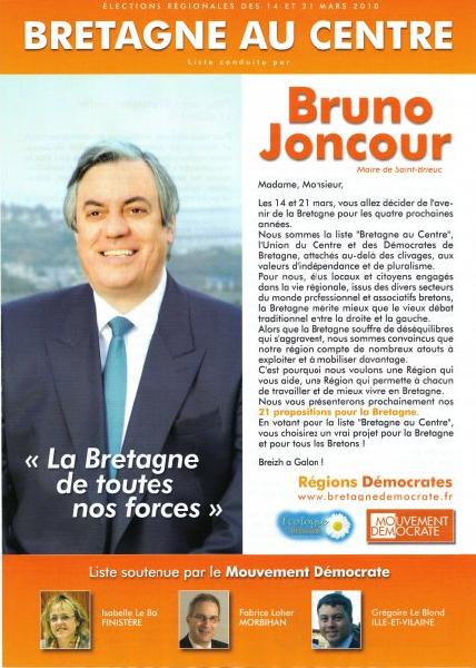 http://bretagnedemocrate.fr/ de Bruno Joncour, Tête de liste pour "Bretagne au Centre".
