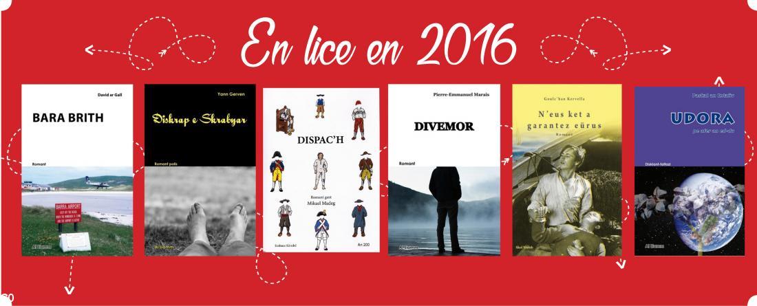 Primés auparavant : Erwan Hupel, Yudal (roman) en 2015 ; Yann Gerven, Traoù nevez (nouvelles) en 2014 ; Aziliz Bourgès, An diaoul ouz taol (roman) en 2013 ; Yann Bijer, Torrebenn (roman) en 2012 ; Riwall Huon, Ar marc’h glas (roman) en 2011 ; Hervé Gouedard, Liñvadenn Kastellaodren (nouvelles) en 2010 ; Mich Beyer, Etrezek an enez (roman) en 2009
