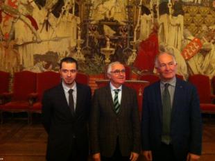 Exclusivité ABP. Cliquer sur l'image pour l'avoir entière, notamment le copyright. La tapisserie brodée par les ateliers Le Minor de Pont-l'Abbé, annoncée en 2014 (1), pour remplacer, au Parlement de Bretagne à Rennes, celle qui avait malencontreusement brûlé - non lors de l'incendie du Parlement le 4 février 1994 mais dans l'atelier de restauration où elle séjournait, suite à l'incendie, attendant un nettoyage - sera exécutée en 2016 d'après le projet de Ricardo Cavallo.