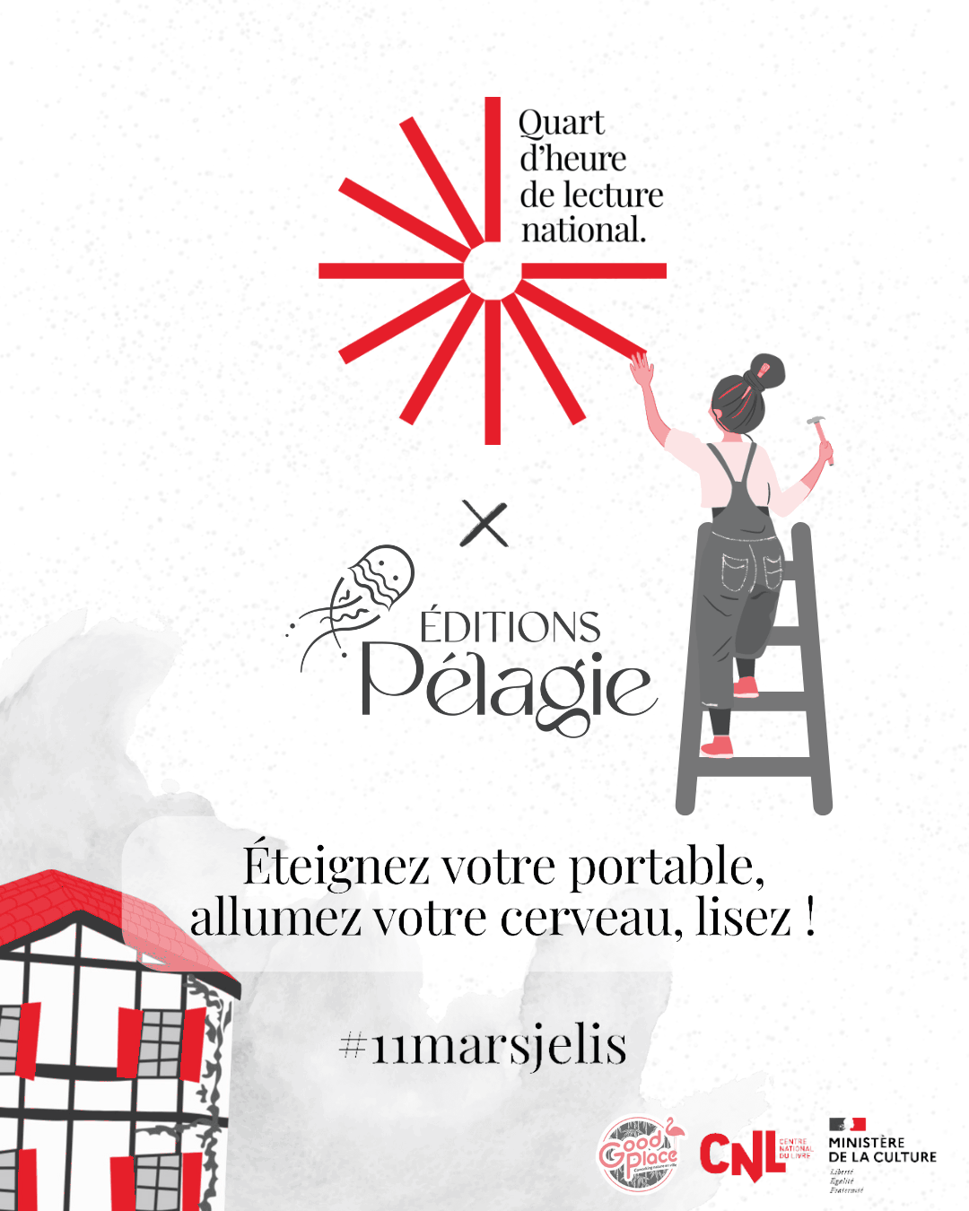 Cette année, les éditions Pélagie participent au Quart d’heure de lecture national en partenariat avec le Centre National du Livre. L’objectif ? Remettre le livre et la lecture au centre de notre vie quotidienne.