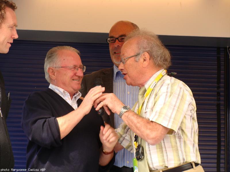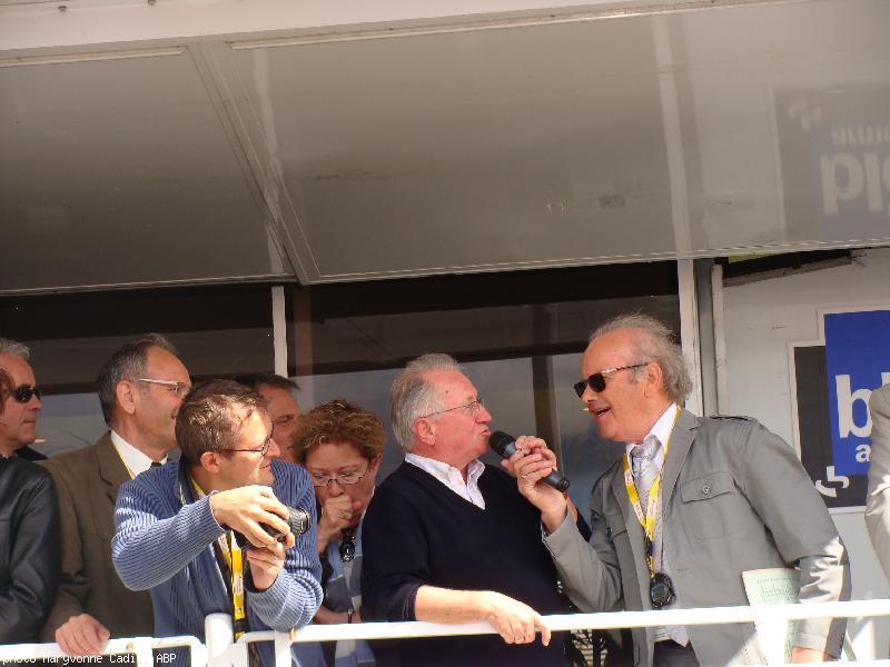 - Vallet. Tour 2009 : Le président du Conseil général Patrick Mareschal dans le camion tribune avant l\'arrivée.
