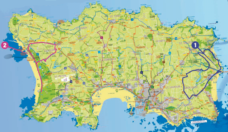 - Carte de l\'Île de Jersey. Les deux premières étapes.