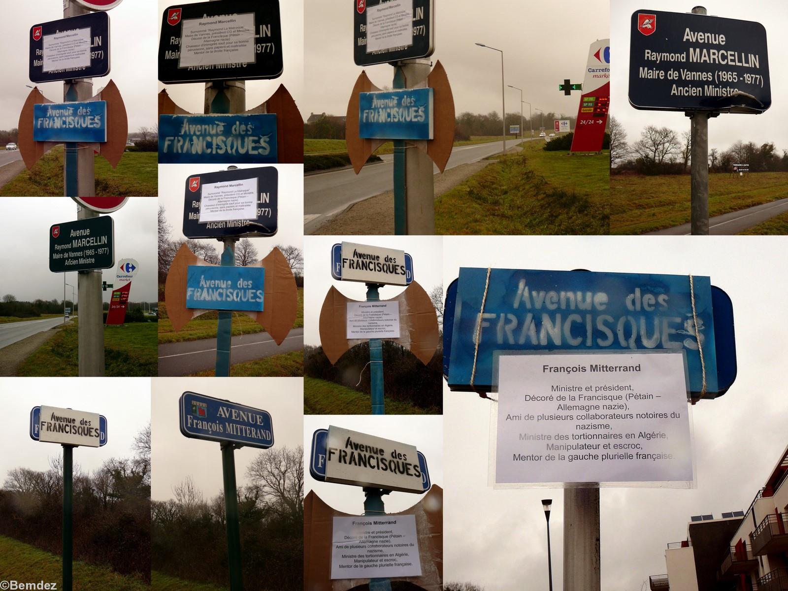 L'association Bemdez a débaptisé les avenues Raymond Marcellin et François Mitterrand, constituant une même voie entre Séné et Vannes : photos en pièces jointes.
