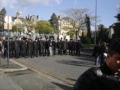 De 800 à 1000 personnes dont plusieurs centaines d'avocats et de greffiers ont manifesté aujourd'hui à Rennes contre la réforme de la carte judiciaire. Partis de la mairie vers la préfecture, les manifestants, dont un tiers en robes noires, ont attendu le passage de la voiture de la Garde des Sceaux, Rachida Dati, avant de redescendre place du Parlement où les attendait comme d'ailleurs devant la préfecture, un cordon de CRS prêts à toutes éventualités.