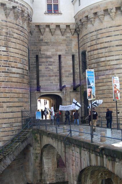 M. Jean-Marc Ayrault, Maire de Nantes, n'ayant pas daigné se rendre à notre rendez-vous fixé à 11H00 devant la statue de notre dernière souveraine Anne de Bretagne, nos chevaliers bretons ont alors symboliquement investi le Château des Ducs, ne rencontrant pas comme en Août dernier de résistance de la part des forces occupantes ligériennes qui nous avaient alors empêché de déployer notre drapeau breton sur les remparts.