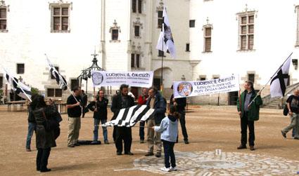 Puis membres et sympathisants de Tudjentil Breizh sont redescendus à 12H00 dans la cour d'honneur du château afin de procéder au nom du peuple breton à l'acte de prise de possession du château des Ducs de Bretagne en relisant en français et en breton notre communiqué ABP du 8 Juin et en y ajoutant le texte suivant :