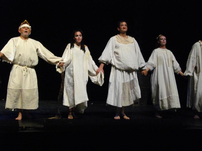 Aristophane était bien servi avec les neuf acteurs professionnels de la troupe La Rampe Tio basée à Montpellier, qui travaille la matière occitane et méditerranéenne (Mistral, les carnavals, le répertoire de la Comedia dell'arte...) depuis 30 ans.