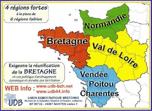 Jeudi 7 juin 2007: Réunion publique : les enjeux de la réunification de la Bretagne Les candidats présentés par l'Union démocratique bretonne (UDB) en Loire-Atlantique exposeront le jeudi 7 juin à 18 h, dans la salle de réunions du café Le Flesselles, 3 allée de Flesselles à Nantes (près du Commerce) les enjeux de la réunification administrative de la Bretagne.