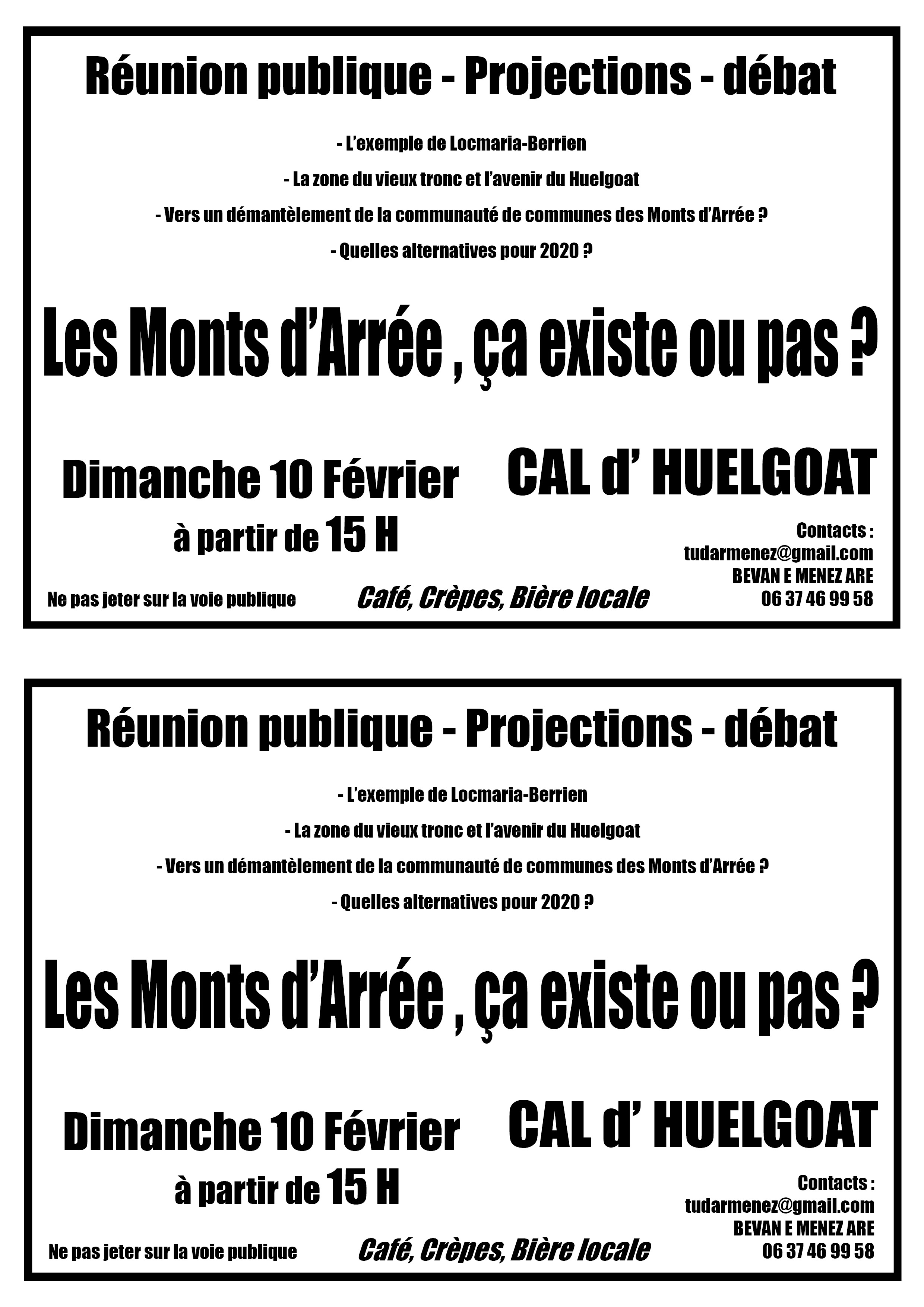 Sous ce titre volontairement provocateur, le collectif nouvellement créé « Tud ar Menez » appelle à une réunion d'information publique à Huelgoat le dimanche 10 février.