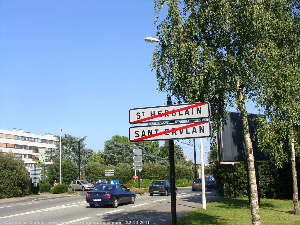 - <b>Cliquer sur les photos</b>. Panneaux bilingues français-breton à Saint-Herblain / Sant-Ervlan. Rond-point boulevard du Tertre – rue de Saint-Nazaire.