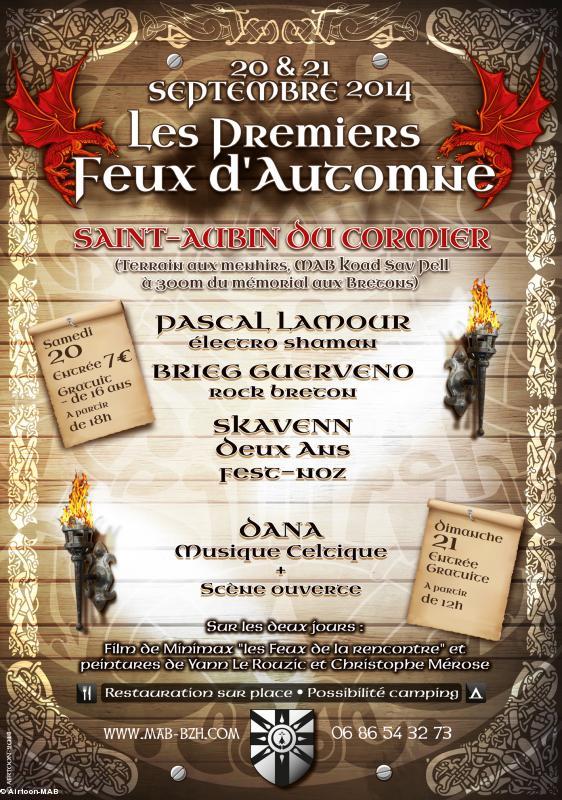 En parallèle aux Feux de la Rencontre du mois de juin de chaque année depuis 2004, les Premiers Feux d'Automne 2014 auront lieu le samedi 20 septembre et le dimanche 21 septembre, pour la sixième année consécutive, sur la Lande de la Rencontre, entre Mézières-sur-Couesnon et Saint-Aubin du Cormier (à 300 m du Mémorial aux Bretons, ce sera fléché), sur l'épicentre du champ de la bataille européenne et franco-bretonne du 28 juillet 1488, dite de Saint-Aubin du Cormier. Là se trouvaient les troupes bretonnes et alliées, juste avant l'engagement du combat.
