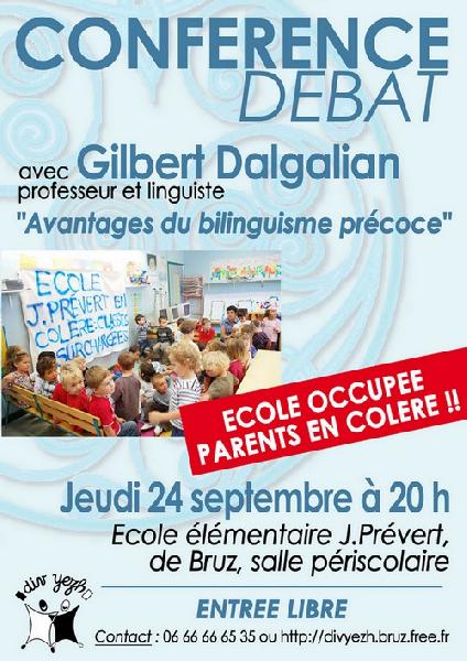-> à participer à une conférence-débat : Avantages du bilinguisme précoce avec Gilbert Dalgalian, professeur et linguiste Ecole Elémentaire Jacques Prévert à Bruz à 20h,