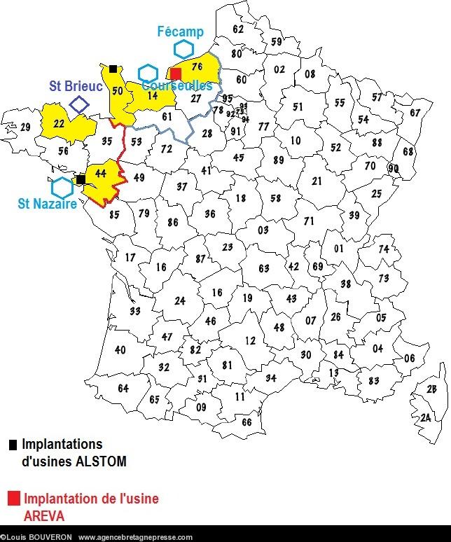 Le gouvernement a décidé de ne pas tout attribuer à un seul opérateur. Ainsi, le consortium Iberdrola – Areva remporte la zone de Saint-Brieuc (Côtes-d'Armor) afin de « donner sa chance » à un autre groupe industriel et « maximiser les retombées industrielles », d'après le ministre de l'Industrie Eric BESSON, bien décidé à ne pas mettre tous les œufs dans le même panier, celui de EDF – Alstom qui remporte trois autres sites, deux en Normandie (Fécamp, en Seine-Maritime, et Courseulles devant le Calvados) et un en Bretagne (Saint-Nazaire).