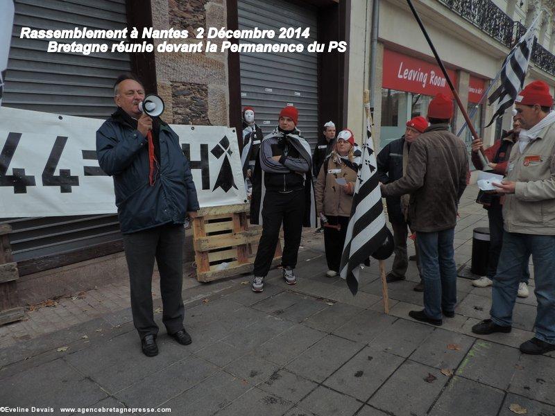 - rassemblement de Bretagne Réunie devant le siège du PS à Nantes - 02/12/14. le PS montré du doigt. Jean-François le Bihan président de Bretagne Réunie