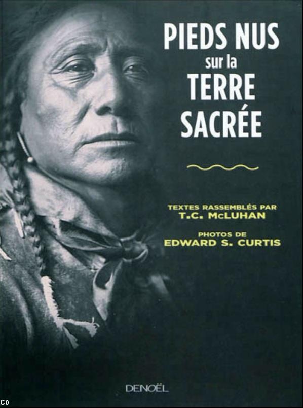 (1) Pieds nus sur la terre sacrée. Un recueil de paroles et de discours provenant d'Indiens de diverses tribus d'Amérique du Nord et de diverses époques rassemblés par T. C. McLuhan. En préambule, chaque texte est expliqué par les circonstances qui l'ont provoqué. Photographies de Edward S. Curtis, traduction de Michel Barthélémy. Première édition en 1976, rééd. en 1984, 2004, 2011. Cette sélection de paroles se propose d'apporter des éclaircissements sur l'histoire des Indiens et de montrer la pérennité de leur civilisation. Le ton de ces écrits, classés par ordre chronologique, est tour à tour celui de la sagesse, du lyrisme, de l'éloquence ou de l'émotion profonde. Portrait de la nature et de la destinée indiennes, ils sont avant tout la preuve de la renaissance d'une civilisation authentiquement indienne. Cette anthologie tend à mettre en relief des traits caractéristiques de celte civilisation où les considérations politiques et historiques s'estompent au profit d'une harmonie de l'homme et de la nature, dans laquelle la terre devient une création sacrée. Voilà un domaine de l'expérience indienne qui peut entrer dans notre héritage commun. (2) Teri C. McLuhan. L’auteure, née et élevée à Toronto, est la fille du célèbre théoricien philosophe canadien Marshall McLuhan. Elle et aussi cinéaste. Elle a fait de nombreuses recherches pour des ouvrages traitant de la vie américaine. Pieds nus sur la terre sacrée est son premier livre. (3) Le photographe du livre Edward Sheriff Curtis (1868-1952) a consacré trente ans de sa vie à fixer sur plaque sensible la civilisation en voie de disparition des Indiens d'Amérique du Nord. Il a visité plus de 80 tribus et pris plus de quarante mille photos, vivant témoignage de la manière de vivre d'un peuple appelé à mourir.Documents liés