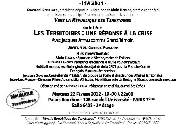 Les territoires : une réponse à la crise. Rencontre-débat avec Jacques Attali, mercredi 22 février, à partir de 19 h 30 à l'Assemblée nationale (Salle 6403 1er étage)