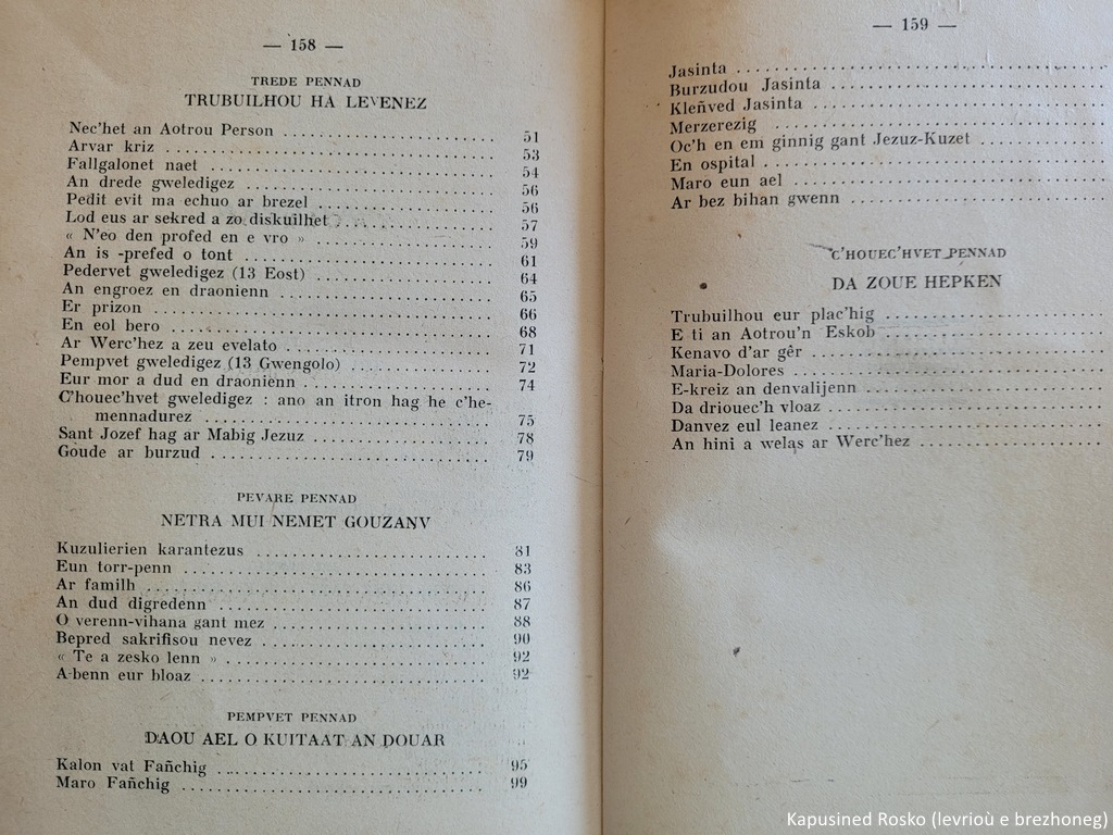 Disheñvel e oa o temz-spered pe o doare dezhe. Hemañ a zo penn-kalet (an Tad Barnabe, daoust dezhañ bezañ savet kantikoù dispar gentañ ! ), hennezh a zo dereat (an Tad Fuljañs a zo ur gwir zudi ouzh e selaou, pe e welet nemetken). Setu ar vuhez, setu tud a Zoue. Betek hiriv? Evel an dud all, en ur mod….