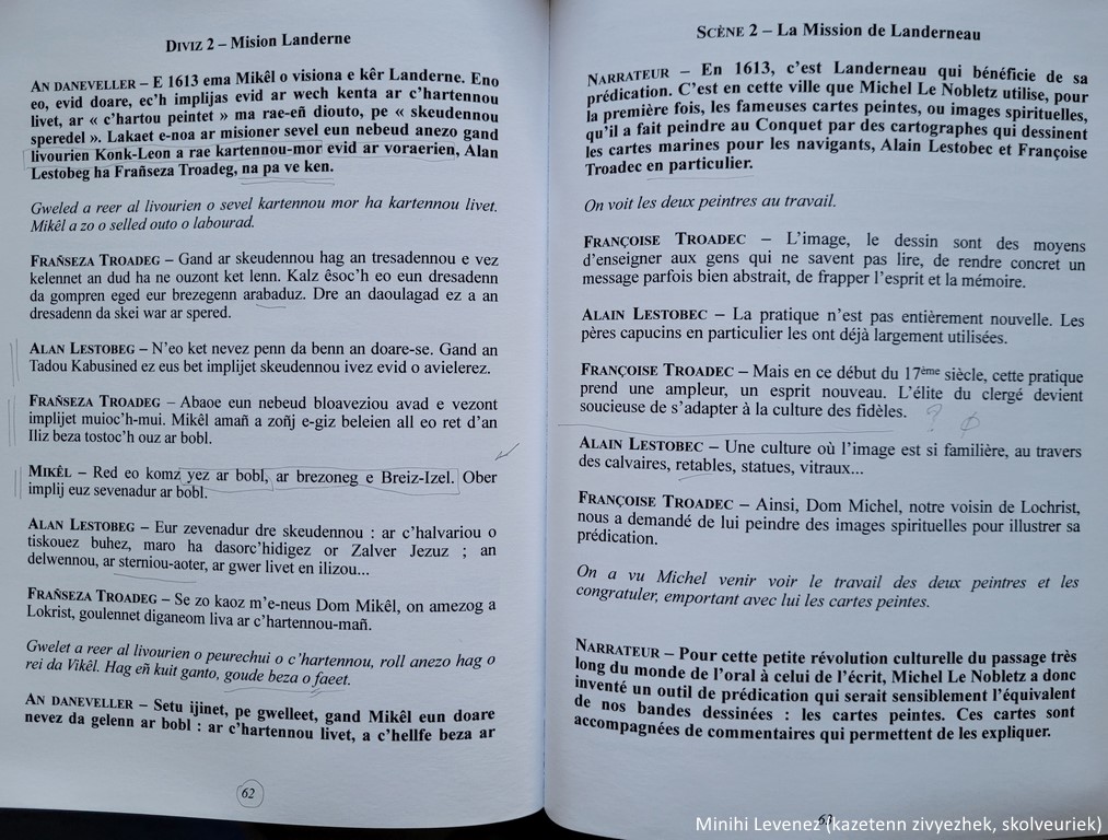 . « Buhez Mikêl an Nobletz ». Pez-C’hoari gand Goulc’han Kervella. Kazetenn ar Minihi Levenez http://www.minihi-levenez.com/ (Niverenn 181, Kerzu 2023). Div-yezhek. Brezoneg (doare-skrivañ skolveuriek) / Galleg. Eur pez-c’hoari savet ha leurennet gant Goulc’han Kervella euz strollad Ar Vro Bagan ha c’hoariet gand re yaouank.