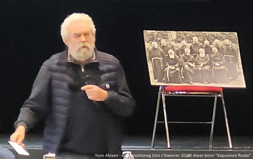 Lesneven. (Penn-ar-bed). E-pad div eurvezh e teu ur brezhoneg sklaer ha flour digant genou Yvon Abiven. Dibunet ingal hag hep ehan, ken ne vo ket a amzer a-walc’h evit ar goulennoù e dibenn ar brezegenn-se ! Leun-chouk eo ar sal. Tud eus ar vro? Tud deuet eus a-bell ? Kit da c’houzout… ! Ar pezh zo sur : sioul eo an dud, ken aketus emaint ha ken sachet eo o spered ouzh an danvez kinniget hirio gant TAV (Ti ar Vro) bro-Leon :. Istor Tad Medard (1908-1988), skrivagner dispar ha brezhoneger ampart, unan eus ar re vrudetañ, hirio c’hoazh, e-touez ar Gabusined e Rosko.…
