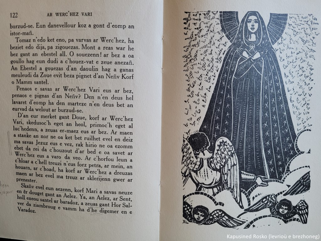 Marteze en em c’houlenno Yann Lenner e-unan petra soñjal a-zivout an danvez. Petra a oa lâret d‘an dud d’ar poent-se. Kemeromp skouerenn levr « Ar Werc’hez-Vari Hor Mamm » (gant Tad Medard).