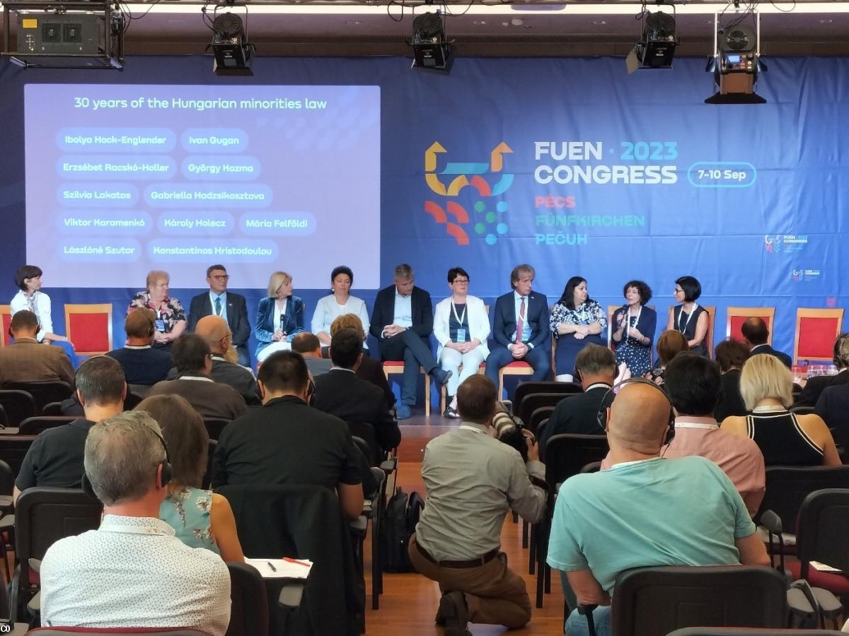 Un des temps forts du congrès a été la rencontre de dix représentants de gouvernements autonomes de Hongrie (cf photo ci-dessus). Depuis 30 ans déjà, les 13 minorités nationales reconnues par l’état Hongrois bénéficient d’une législation protectrice de leurs cultures et leurs langues.