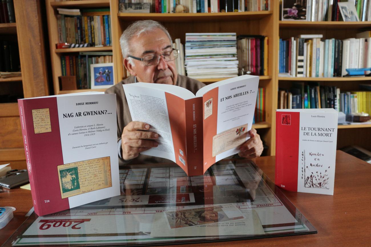 Pendant la guerre de 14/18, les poilus bretons envoyaient de nombreux courriers en français. Or l'un deux n'écrivait qu'en breton : ses 646 lettres (sur plus de mille envoyées !) sont désormais publiées dans les deux langues, et commentées par Daniel Carré qui avait déjà travaillé sur l'oeuvre littéraire de Loeiz Herrieu. Le voici qui répond de façon très complète aux différentes questions d'ABP :