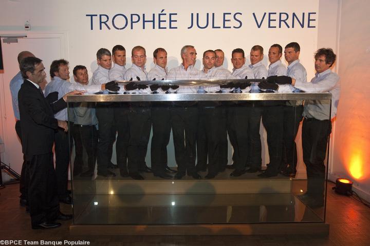 Loïck Peyron et son équipage reçoivent le Trophée Jules Verne au Musée de la Marine de Paris Vendredi 6 janvier dernier, après 45 jours, 13 heures, 42 minutes et 53 secondes