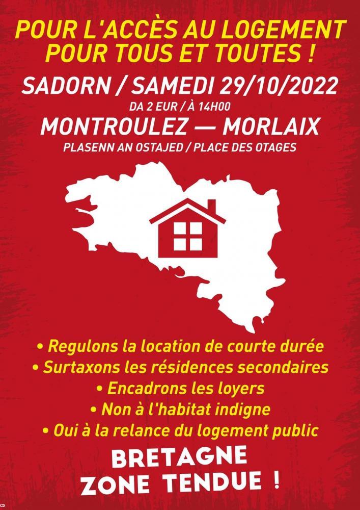 L’Union démocratique bretonne est mobilisée pour l’extension des zones tendues, et avait soutenu les manifestations organisées à Lannion, Concarneau, Douarnenez et Vannes le 10 septembre dernier. Logiquement, le parti appelle donc à participer à la manifestation prévue à Morlaix le 29 octobre, dans le contexte de l’examen du Projet de loi de Finances (PLF) qui […] L’article L