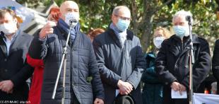 - Kemper manifestadeg, 13vet a viz Meurzh 2021. Kristian Troadeg, maer Karaez, gantañ ar skerb Breizh e livioù .