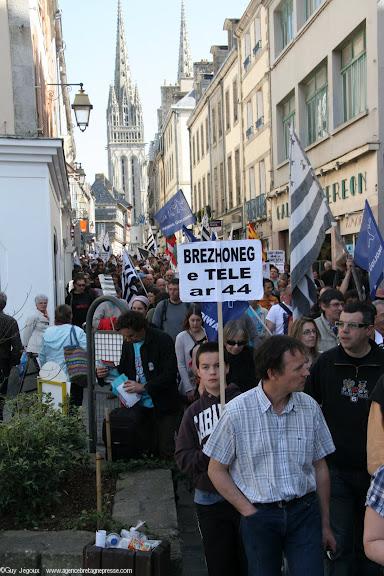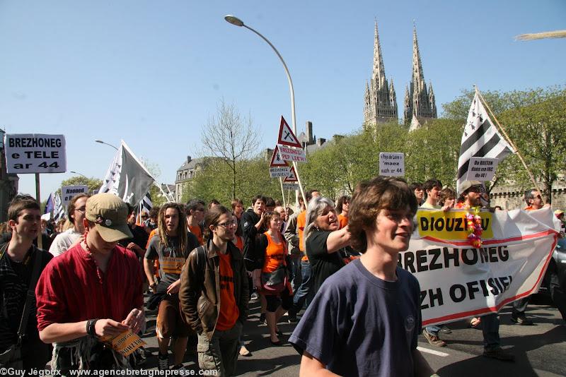 André Corlay membre du conseil d'administration de Bretagne Réunie et créateur du site Bretagne en Résistance : http://www.bretagneenresistance.eu/, en quatre langues, dédié à la manifestation de résistance à Nantes le 18 juin dernier , confirme la présence de la jeunesse et aussi l'effet des “44” renforcé par leurs 300 panneaux modèle manif, e brezhoneg warno eveljust, mar plij !, que l'on s'arrachait en début de manif ! Et dont la photo a fait la Une du Télégramme.