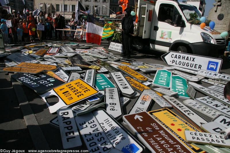 - Encore des panneaux Bretagne Réunie à Kemper.