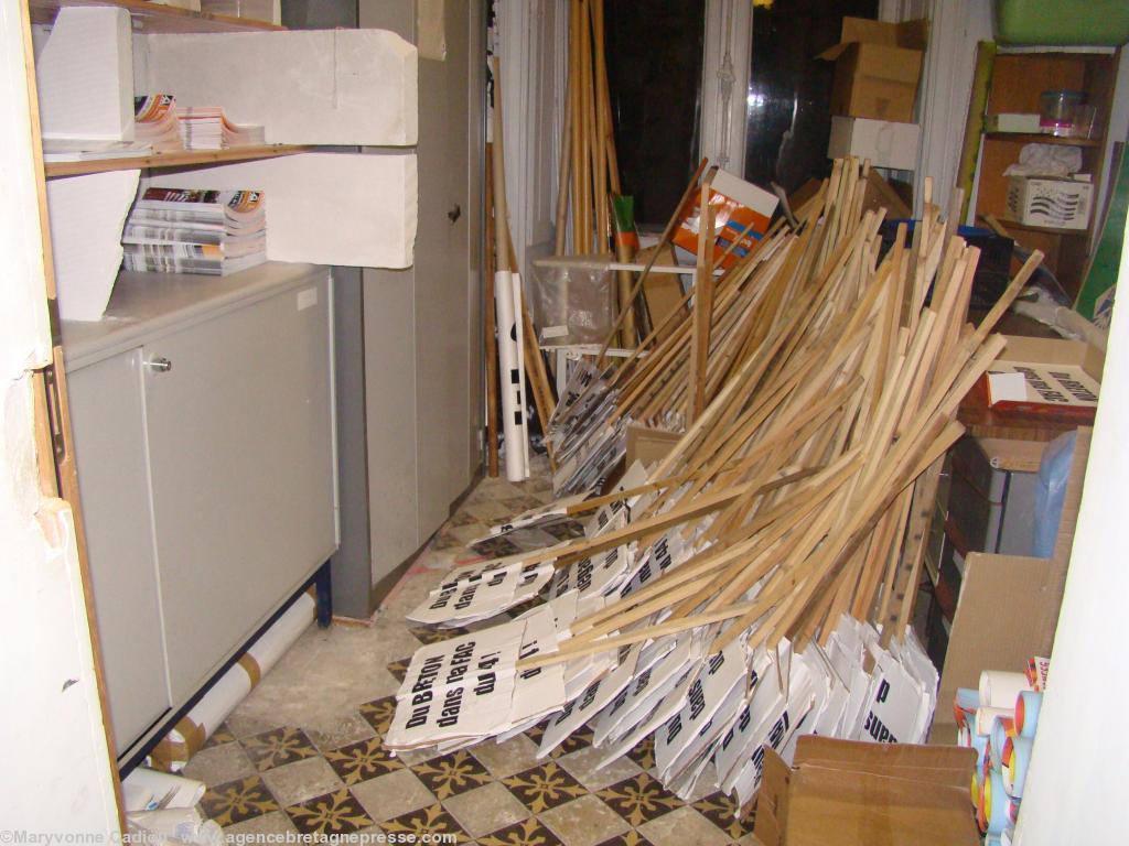 - Ty Keltiek : Le stock de panneaux en français de Bretagne Réunie récupérés après la manif du 18 juin 2011 de Nantes.