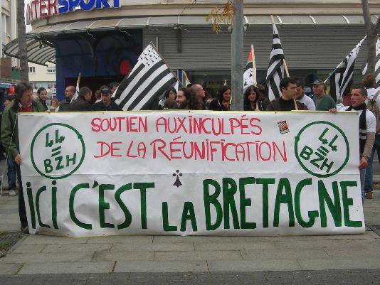 Lors de la manifestation du samedi 10 novembre à Saint-Nazaire, le Parti Breton, par la voix d\'Émile Granville, a apporté son soutien aux 3 jeunes, Hubert, Régis et Thomas, pour leur action symbolique contre la partition de la Bretagne.
