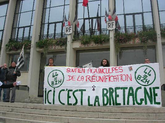 Lors de la manifestation du samedi 10 novembre à Saint-Nazaire, le Parti Breton, par la voix d'Émile Granville, a apporté son soutien aux 3 jeunes, Hubert, Régis et Thomas, pour leur action symbolique contre la partition de la Bretagne.