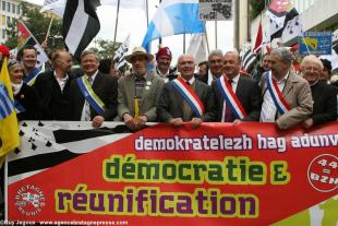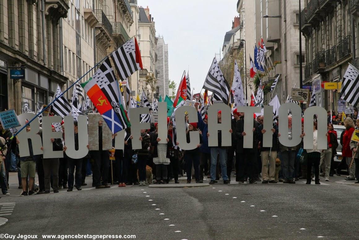 - La tête de la manifestation historique pour la réunification de la Bretagne.