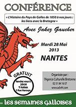 Si vous ne savez pas pourquoi les bretons sont victimes chaque année d'un conflit d'intérêt en assistant au match de rugby France/Pays de Galles ? Quelle grande ville de Loire-Atlantique doit son développement et son essor industriel au charbon gallois ? Quel est le rapport entre le Pays de Galles et le légendaire Roi Arthur ? Ce que sont les Ysgolion Sul ? D'où vient la langue bretonne ? Et enfin, en quoi pour bien des bretons, le Pays de Galles est un modèle ? Voici des questions auxquelles Jakez Gaucher répondra lors de la conférence du mardi 28 mai.