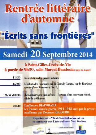 Marie-Josée Christien est invitée à la "Rentrée littéraire d'automne" organisée par la Ville de Saint-Gilles-Croix-de-Vie en partenariat avec l'Arée du littoral Nord Vendéen, sur le thème "Ecrits sans frontières".