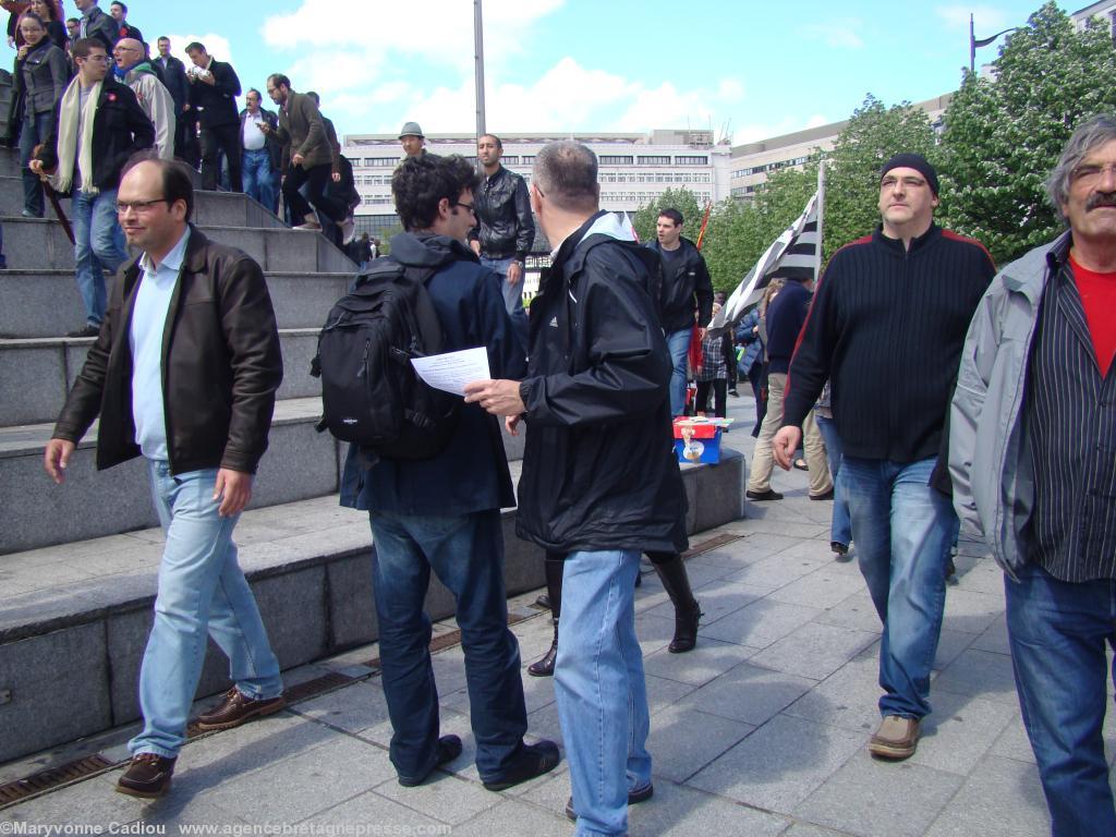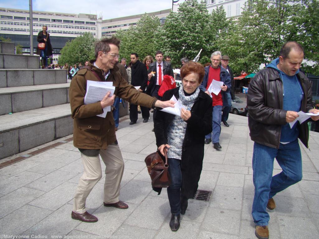 Bretagne Réunie a fait dimanche à Paris Bercy une distribution de tracts au meeting de François Hollande entre 13 h et 15 h environ.Nous n'étions pas nombreux mais ce n'était pas l'énergie qui nous a manquée. À huit (Maryvonne Cadiou – comité local Nantes, Xavier Bellanger – comité local Rennes, Christine Britneff, Jean-Simon Mahé, Jacques Brohand, et moi – Comité local Paris ainsi que Nil Caouissin et Patrick de Sagazan de l'UDB Paris), nous avons distribué entre 1.500 et 2.000 tracts dans une foule compacte et plutôt indifférente. Partis de Nantes, nous étions arrivés, Maryvonne, Xavier et moi à Bercy vers 13 h et avons découvert qu'une foule de gens s'était déjà agglutinée devant les portes d'entrée du stade.