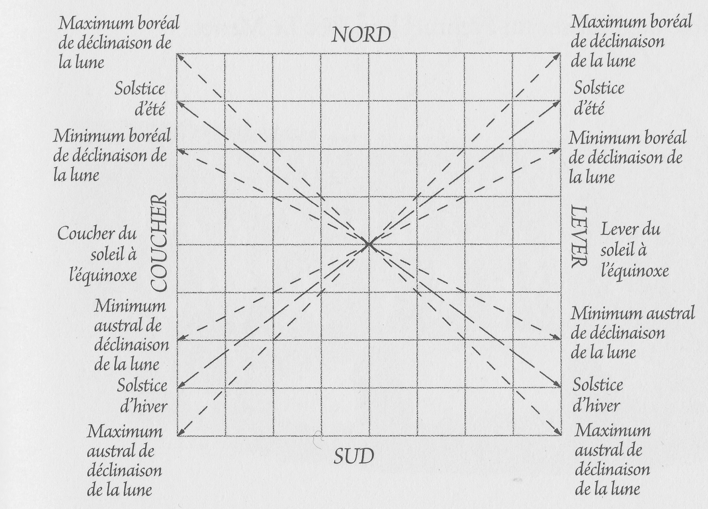 Les constructeurs de mégalithes pouvaient prédire les éclipses comme les Chaldéens, les Grecs, les Egyptiens et les Chinois, mais aussi les marées du siècle (à peu près le même cycle que les éclipses) et bien sûr les grandes marées tout court et autres phénomènes liés au cycle de 18,6 années qu’effectue la lune dans ses rapports avec notre planète et le soleil. Ils suivaient aussi un autre cycle presque de la même durée. Le cycle métonique (du nom du grec Metone) qui fait 19 ans exactement. A ne pas confondre avec le cycle de 18,6 ans dit cycle de Saros. Au bout de 19 ans, soit 235 mois lunaires, le calendrier lunaire rejoint le calendrier solaire, les phases de la lune retombent le même jour à une heure et 27 minutes près !