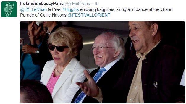 Pour la première fois dans l'histoire du Festival interceltique de Lorient, un président de la république irlandaise en exercice a fait le déplacement et séjourné durant 3 jours dans la ville aux 5 ports, l'Irlande étant l'invité d'honneur de cette édition 2014.