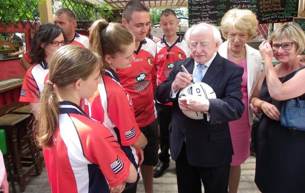 Autre moment très chaleureux, la rencontre le dimanche entre le président irlandais et les représentants des clubs de football gaélique de Bretagne, rencontre organisée à la demande de l'ambassade d'Irlande. Il faut noter que les Irlandais sont surpris et enthousiasmés par le développement du football gaélique en Bretagne (11 clubs) et que le GAA (l'organe central qui gère les sports irlandais) prend désormais la Bretagne pour exemple concernant le développement du football gaélique hors-Irlande. Cette rencontre organisée au Galway Inn, le pub irlandais bien connu de Lorient tenu par Padraig Larkin (de Galway) fut un vrai moment de convivialité et d'amitié entre Irlandais et Bretons. Un vrai succès qui, de plus, donne une meilleure visibilité au football gaélique en Bretagne.