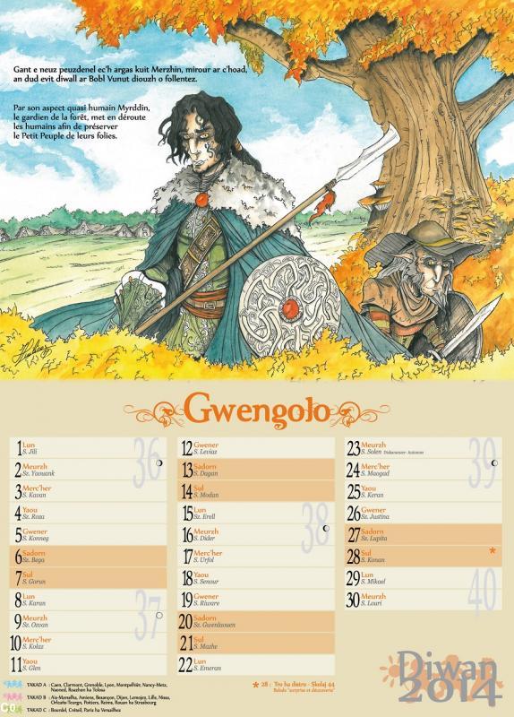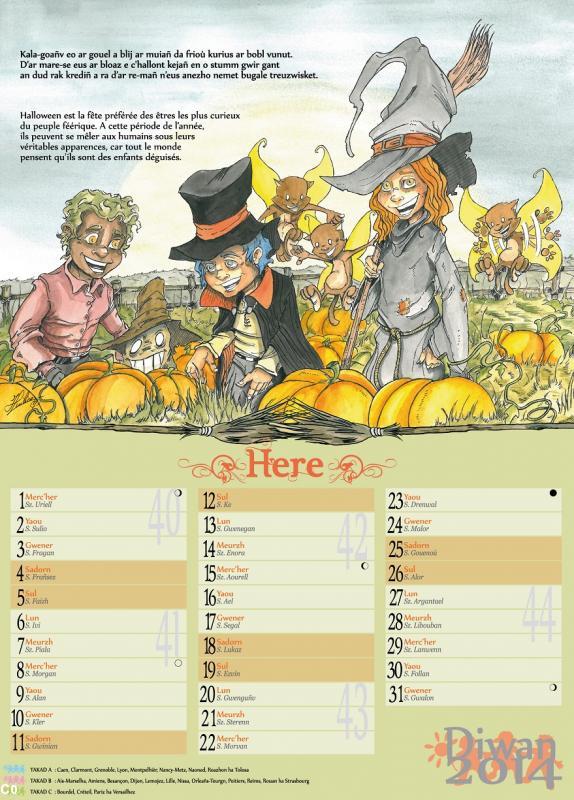 La librairie Gweladenn de Saint-Nazaire recevra Mickaël Huiliers le samedi 5 octobre, de 10 h 30 à 12 h 30. Il y présentera le calendrier Diwan 2014 qu'il a illustré. Cliquer sur la photo 1 puis naviguer avec les flèches du clavier.