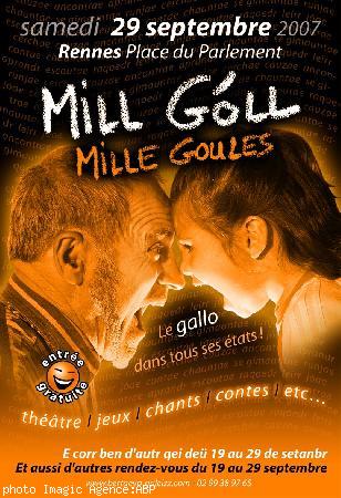 Principal événement autour de la promotion de la langue romane de l'Est de la Bretagne, Mill-Góll donne l'occasion au public de (re)découvrir le gallo et de s'informer sur les mille possibilités pour faire renaître cette langue, longtemps reléguée au rang de "patois". A la radio, dans les écoles, sur internet, dans les cafés, en ville comme en milieu rural, le gallo s'exprime un peu partout. Le théâtre, la poésie, le conte,... Toutes les expressions servent désormais de support au gallo. Le fil conducteur d'une grand partie des rendez-vous de Mill-Góll (bavard en gallo) sera cette année le gallo qui s'écrit.