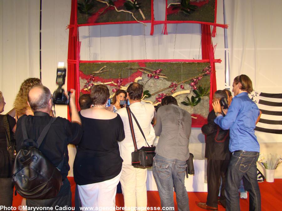 Avant la cérémonie Madame de Fontenay (“Appelez-moi Geneviève” !), a reçu d'un membre de Bretagne Réunie des documents sur la réunification de la Bretagne qu'elle a acceptés avec plaisir en promettant de les lire. Elle a aussi accepté de poser avec le drapeau breton pour les journalistes. Voir les photos. Tout au long de la soirée elle a été vraiment adorable, charmante avec tout le monde, disponible. Elle s'est réjouie de la présence en nombre de la presse, qu'elle a remerciée chaleureusement, une "avalanche" a-t-elle dit.