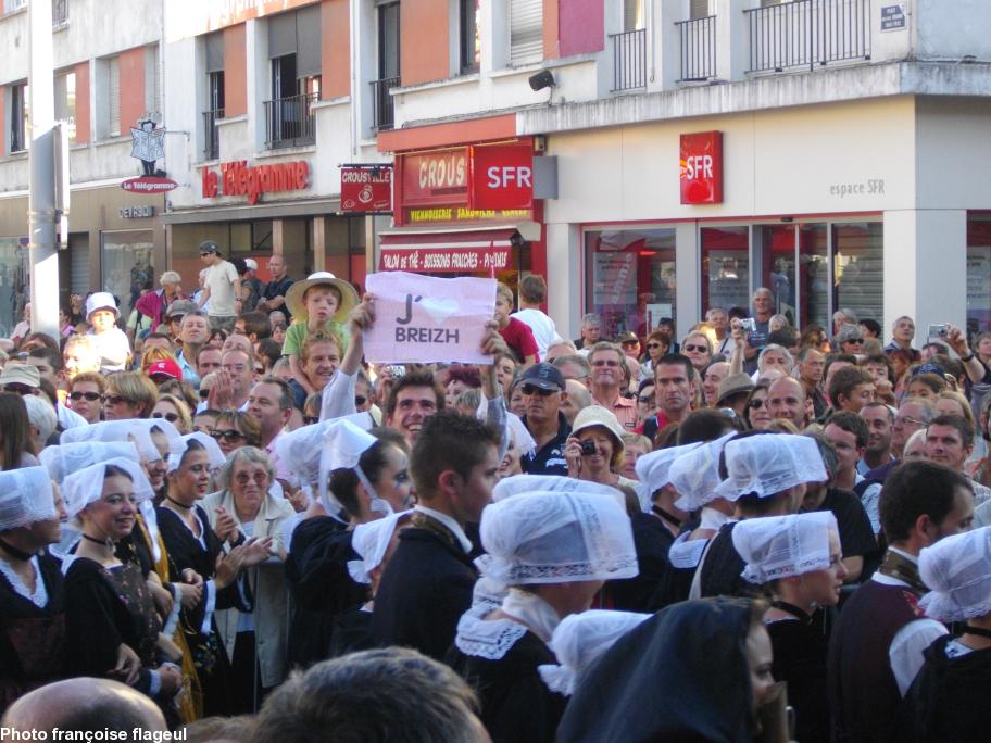 Brav an amzer d'ar sul 8 a viz Eost b'an Oriant, tud diniver war ar straedoù, touristed ha tud ar vro, laouen ha lorc'h enno da welout kement-se a Vretoned o seniñ hag o tibuniñ en Oriant, bagadoù ha kelc'hioù mesket, tud bro Vigouden gant tud an Aven, Tregeriz, Gwenediz, tud gwisket mod ar vro giz gwechall, 'giz vremañ ...